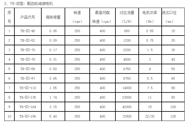 2、转子泵的制造分级为:医药型、耐腐蚀型、污泥型三大系列;在结构上分高压高粘度、高压低粘度两大类制造;按产品的应用类型分为变通型、食品级、化工级、油田型、特种型五大系列;转子泵的核心部件及密封装置,根据不同介质物料的不同特性,采用不同的材质和不同的密封形式制造,以满足各种物料和生产工艺流程需要,提升了转子泵的专业输送性能。