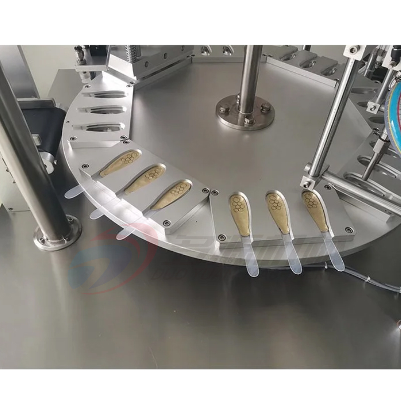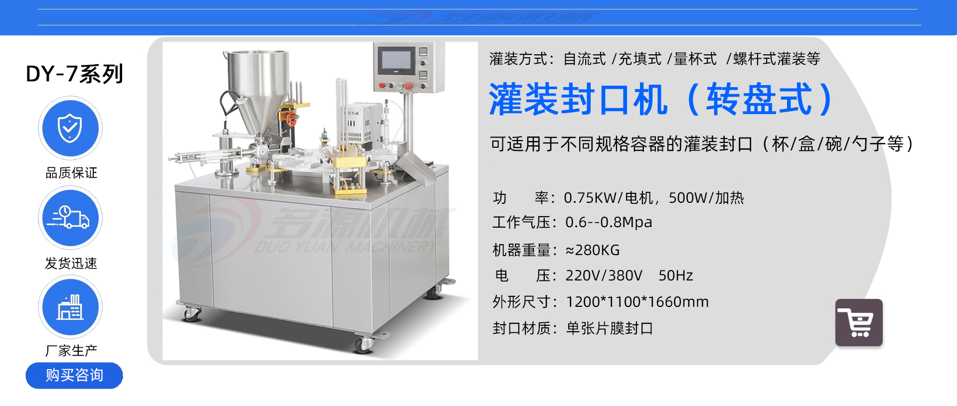 勺子蜂蜜转盘式-DY-7系列封口机可根据用户的要求设计不同的机器模具、和不同的灌装方式,以满足不同生产用户的各种加工需求。
