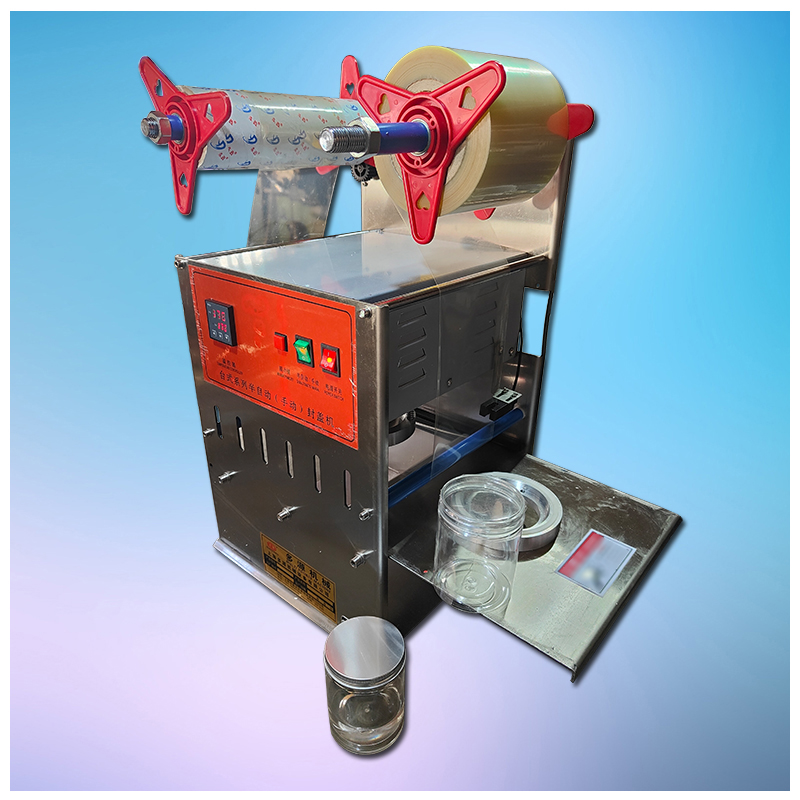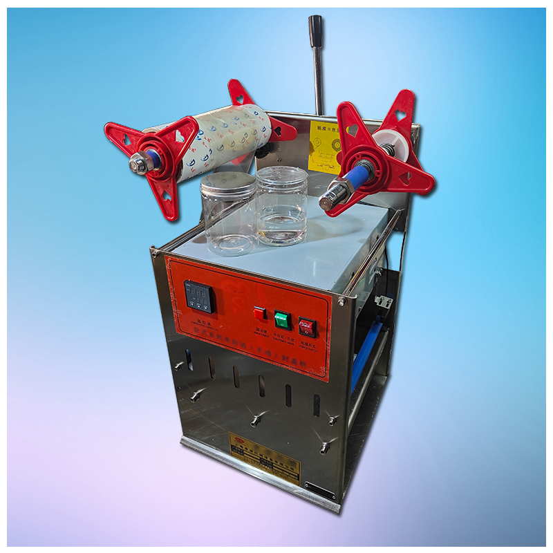 PET广口瓶罐子封口机对一次性塑料透明罐子餐盒碗装打包封口机有手动式碗装餐盒封口机和连续式生产型打包外卖封口机,本机是手压封口,带切边切膜的功能,电动机收卷废膜,操作方便,外形美观,外卖餐盒、PET材质广口瓶卷膜封口一次性打包碗盒等生产厂家的包装封口机械设备。