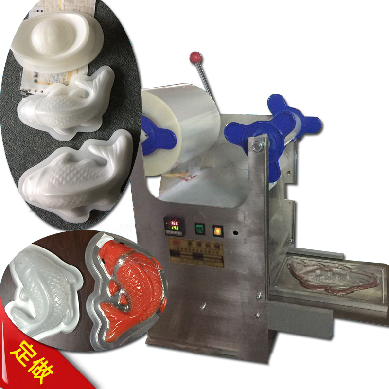 一次性鱼型塑料托盘散装打包封口机有手动式压膜盒封口机和连续式生产型打包覆膜封口机,本机是手压封口,带切边切膜的功能,手工收卷废膜,操作方便,外形美观,可以对鱼型的塑料盒子或者动物形状托盘进行热压覆膜封口使用。