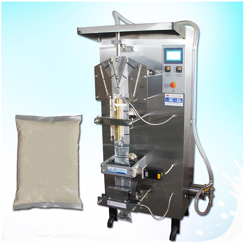 4、多功能液体汤汁包装机可以包装的物料有:液体汤汁,高汤浓汤,牛奶、酱油、醋、黄酒及多种液体物料。液体汤汁灌装包装机上面所用的包装耗材是:单层PE膜和多层复合膜都可以使用的。