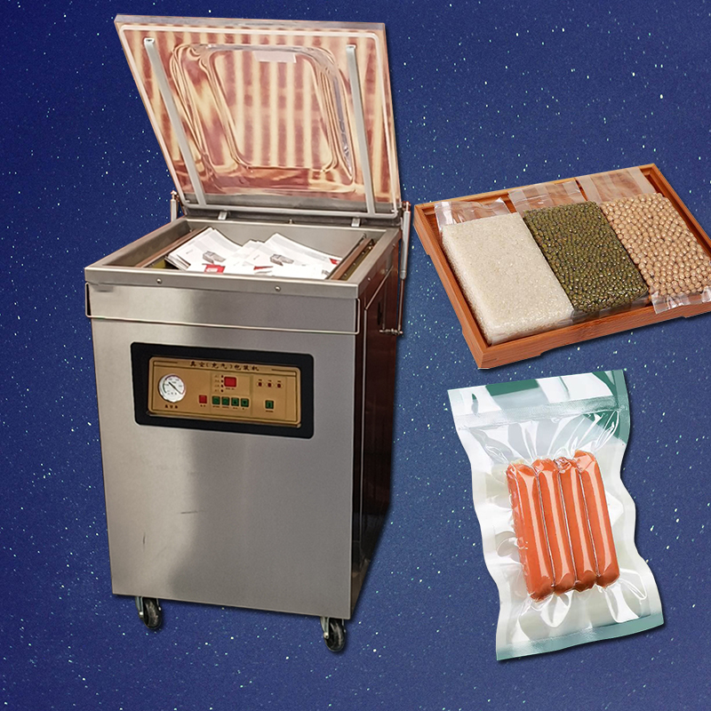 021-56067559DZ400/2D真空(充气)包装机还有DZ500/2D单室真空包装机,只需按下真空室上盖(有机玻璃盖子或者钢铁盖子)即可按事先设定的程序完成抽真空或抽完真空后充入惰性气体(氮气等),封口、印字、冷却、排气的全过程。