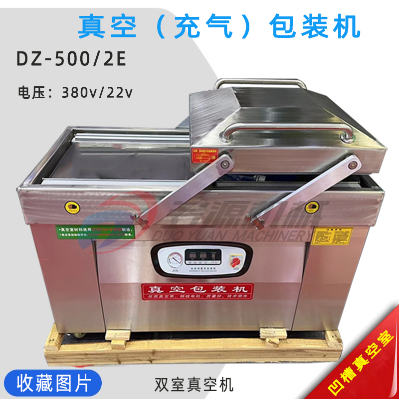 021-56067559DZ400/2E真空(充气)包装机(DZ500/2E双室真空机),只需按下真空室盖(不锈铁钢铁盖子)即可按事先设定的程序完成抽真空或抽完真空后充入惰性气体(氮气等),封口、印字、冷却、排气的全过程。